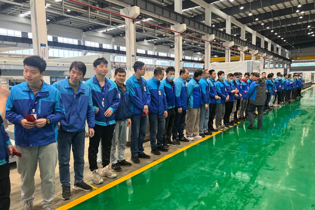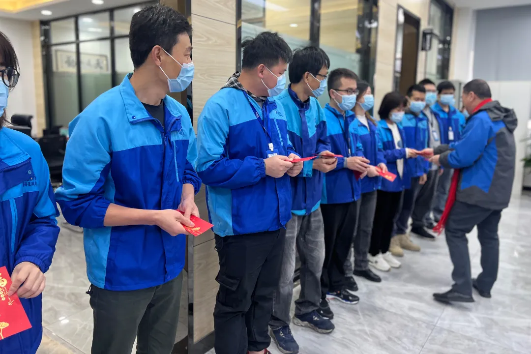 董事长赵盛宇携高层领导一行齐聚深圳海目星一楼大厅,专程迎接年后回来工作的海目星家人们,道上一句“新年好”,让大家开启了满血复活的工作状态。