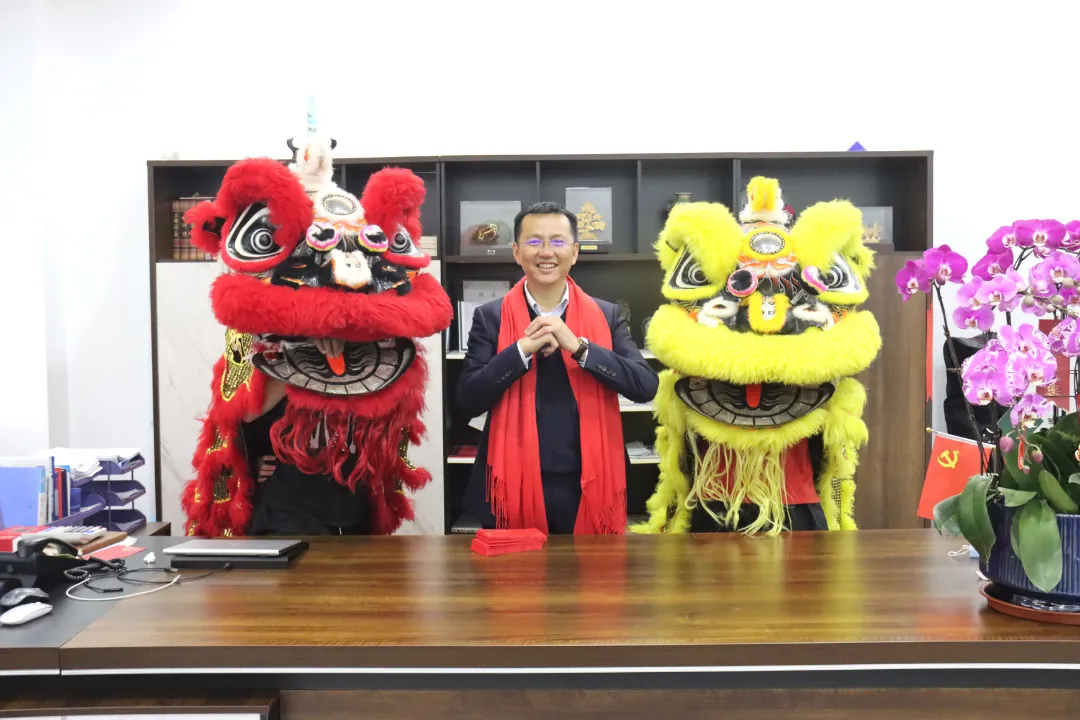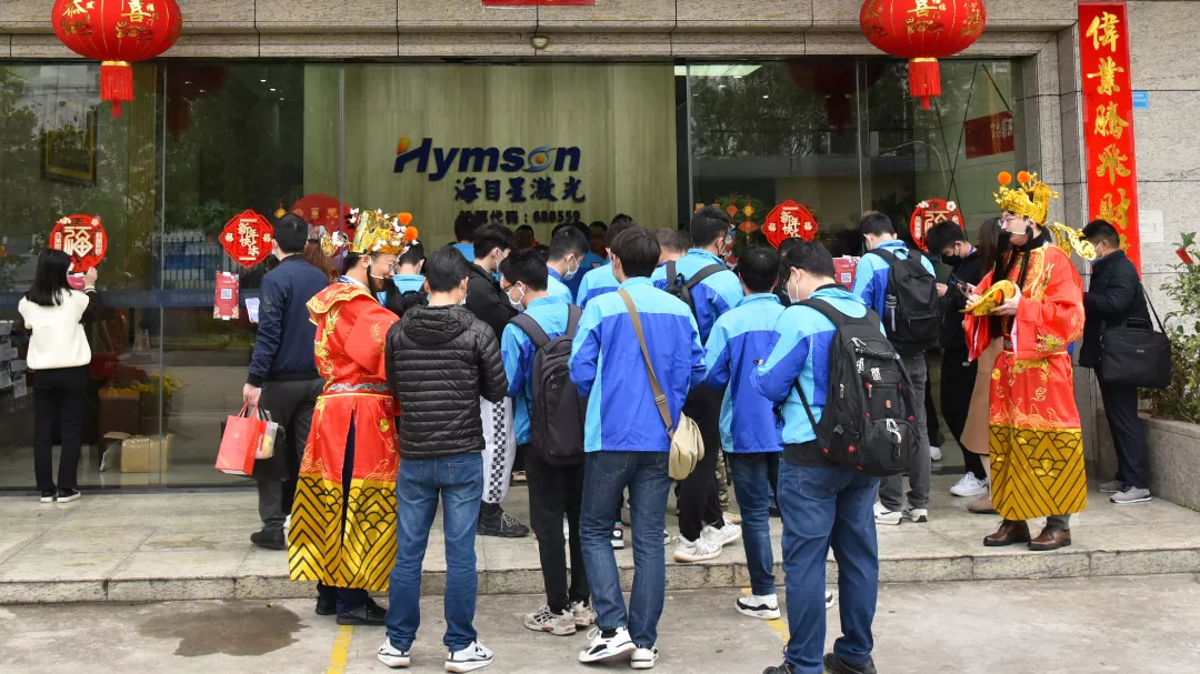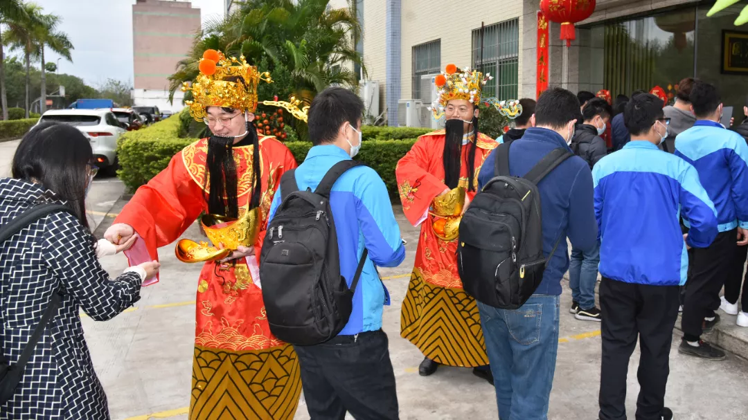 江门海目星总经理聂水斌携高层领导一行早早来到门口,与前来上班的员工互道新春祝福,同事们元气满满的回归工作岗位,各办公室、车间里笑声盈盈,喜气洋洋,年味十足。
