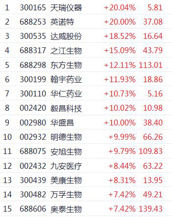 9日,抗原检测概念开盘冲高,截至午间收盘,天瑞仪器(300165)、英诺特20CM涨停,达威股份(300535)、之江生物、东方生物涨超10%,华仁药业(300110)、毅昌科技、华盛昌涨停、明德生物(002932)涨停。