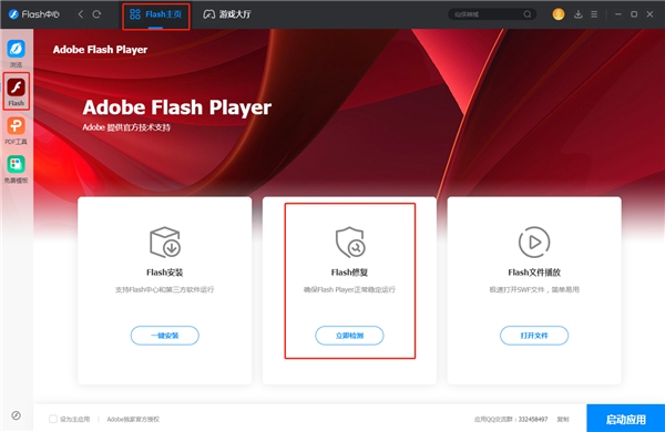 为了更好地服务用户、提升产品的安全性能,Flash Player定期进行产品的更新优化,对Flash Player常见运行问题提供解决方案。除更新迭代以外,官方还上线了能够进行Flash修复的Flash中心软件。遇到Flash使用问题时,用户可使用该软件进行问题的排查及修复。