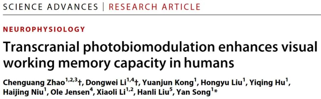 [2] Chenguang Zhao et al, Transcranial photobiomodulation enhances visual working memory capacity in humans, Science Advances (2022). DOI: 10.1126/sciadv.abq3211