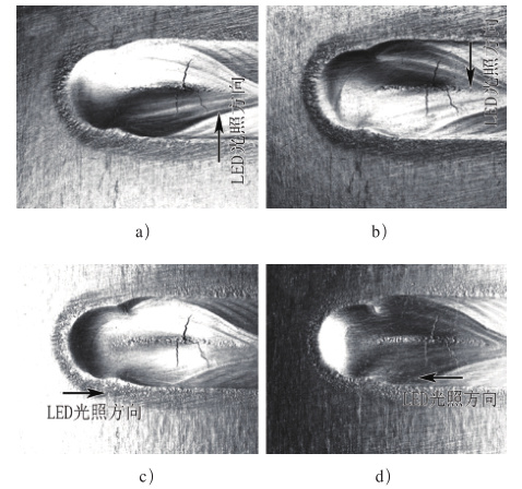 图2 LED光源位置不同时的焊接裂纹二维灰度图像