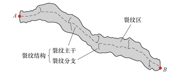 图3 提取的焊接缺陷三维深度图像再如,HUANG等创新性地引入了一种非接触、灵活的照相检测技术,提出了一种铝合金焊接接头可靠性估计方法,即建立裂纹扩展图像在线监控系统,对裂纹结构进行建模(见图4),计算裂纹长度,预测制造过程中裂纹的扩展数据。