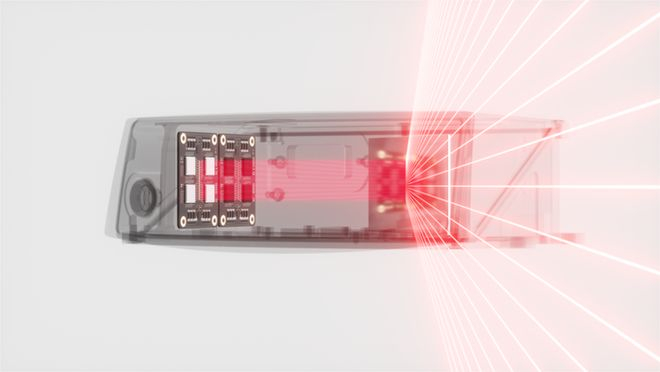 众所周知,光既是粒子,也是一种波,那 Luminar 就通过把激光的波长拉长,来让它变得更 “ 软 ” ,这样就有三个好处,第一不伤眼,第二射得远,第三更清晰。